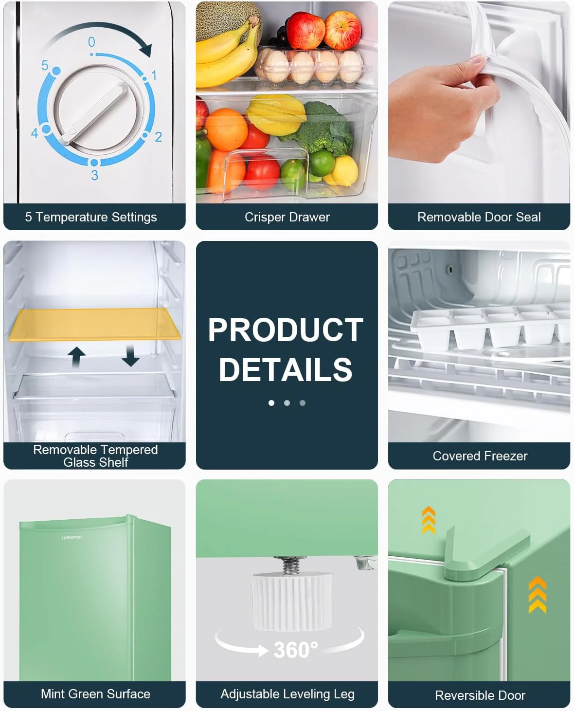 • Crisper Drawer & Removable Shelves: Features a crisper drawer to keep your greens and fruits fresh and juicy. The small fridge storage space is adjustable to practical uses with removable shelves. Arrange these shelves how you see fit and you'd be amazed how much the small fridge can stores